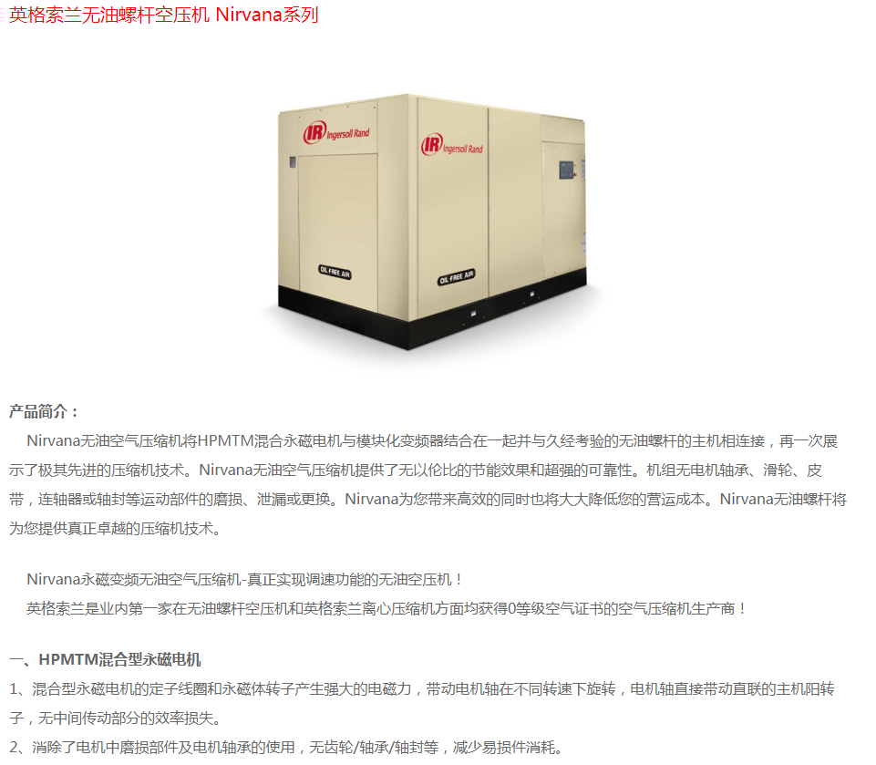 英格索蘭無(wú)油螺桿空壓機(jī)Nirvana